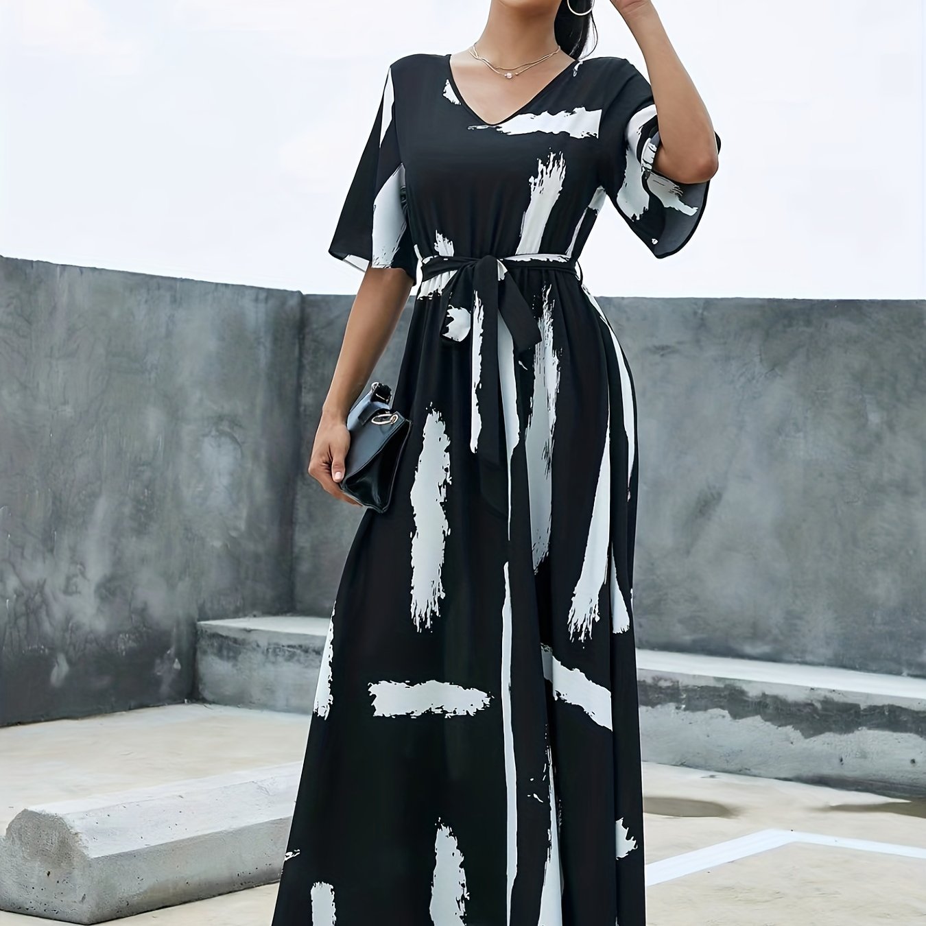 Robe Decontractee d ete une piece imprimee a manches courtes et taille nouee Very well made.