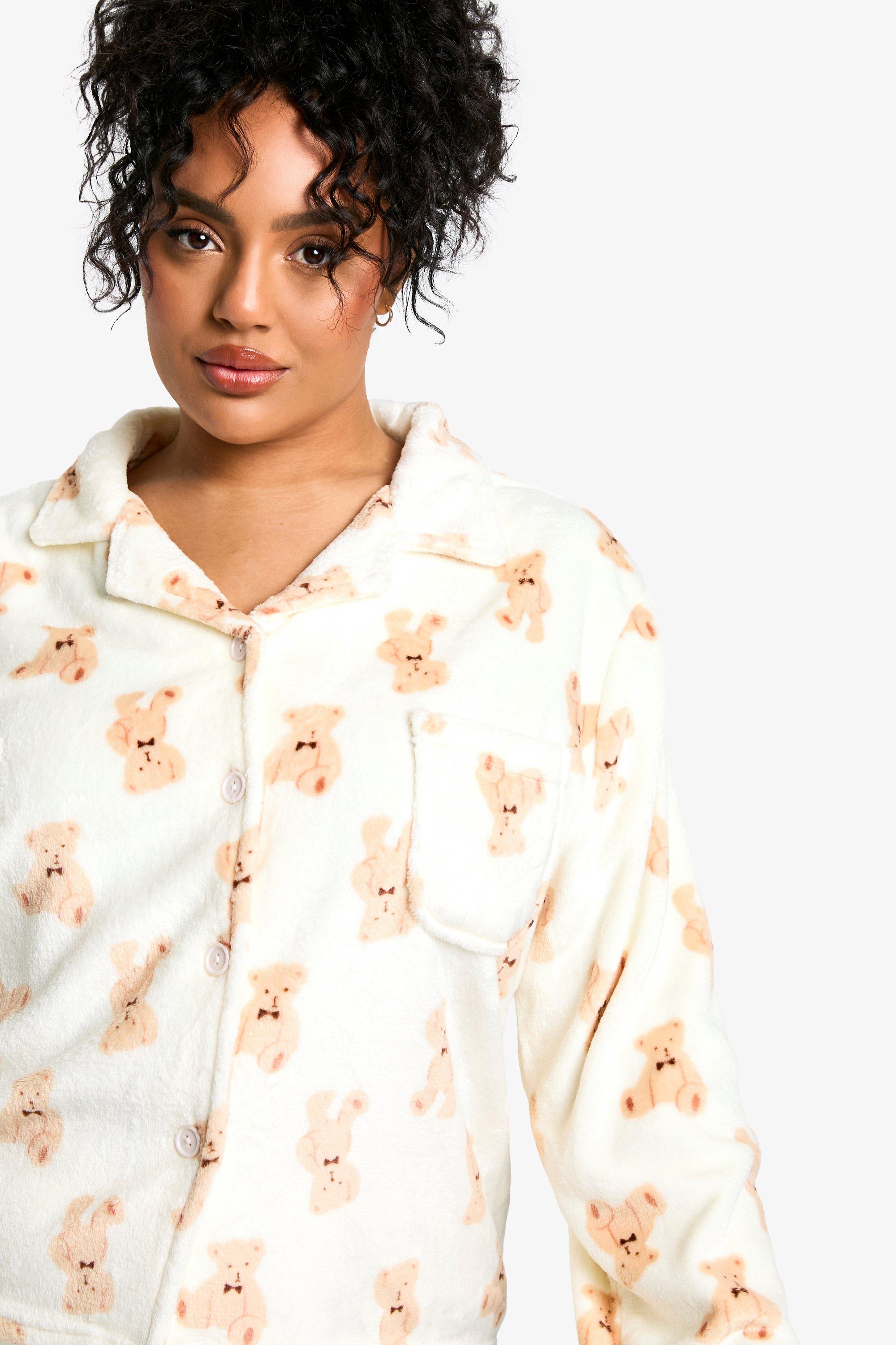 Loungeable Cream Teddy Bear Button Shirt And Long Pant Pyjama Set Small Womens Very well made.