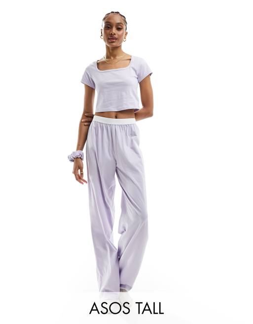 ASOS DESIGN Tall cotton pyjama pants with exposed waistband and picot trim in lilac Very well made.