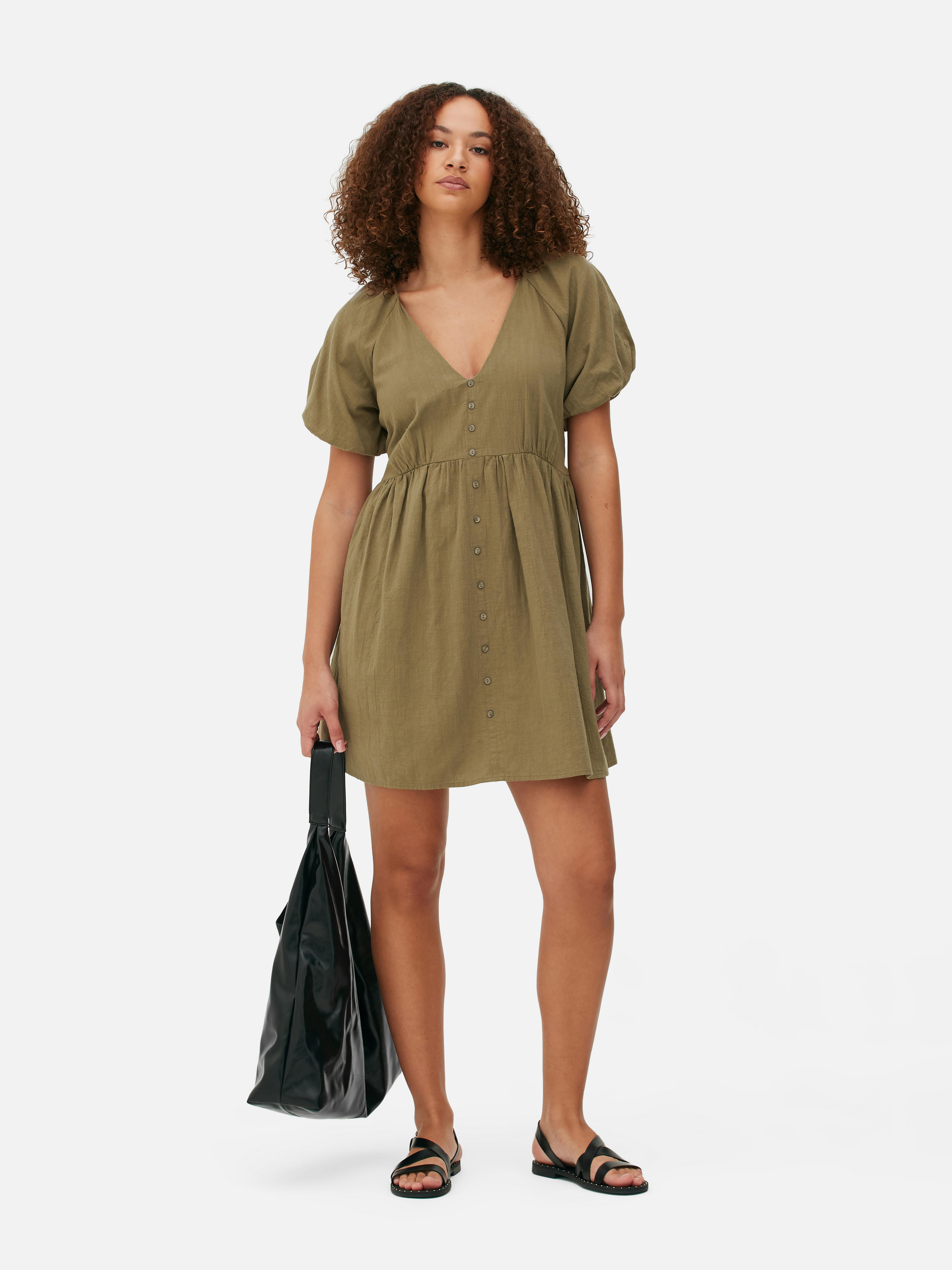 Robe a smocks manches bouffantes et col en V Kaki Femme Primark Very well made.