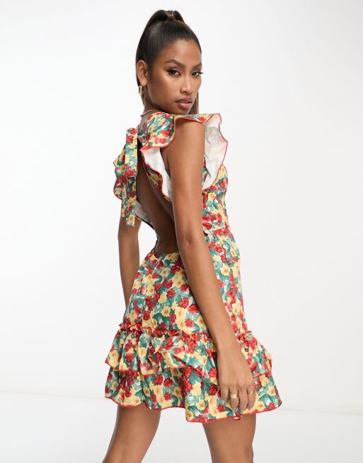 Rebellious Fashion Robe courte a fleurs avec decollete plongeant et dos ouvert Multicolore ASOS Very well made.