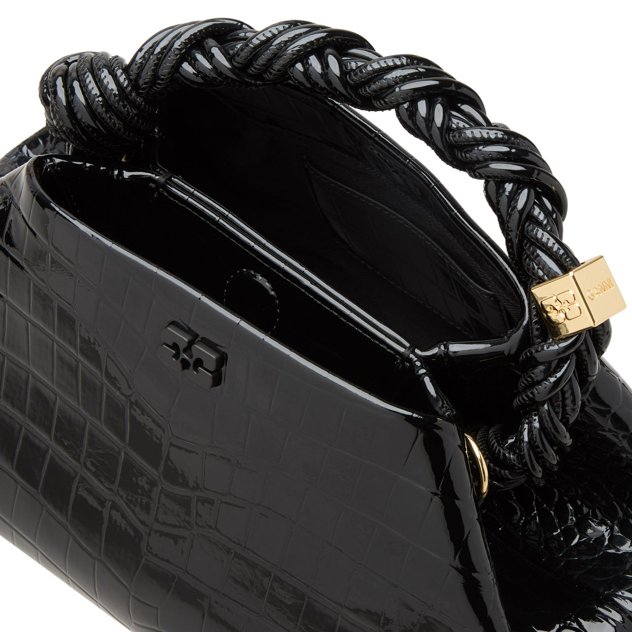 GANNI The Sustainable Edit Bou Croc Embossed Small Top Handle Bag Black Very well made.