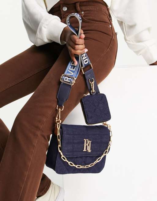River Island quilted denim double cross body bag in navy Very well made.