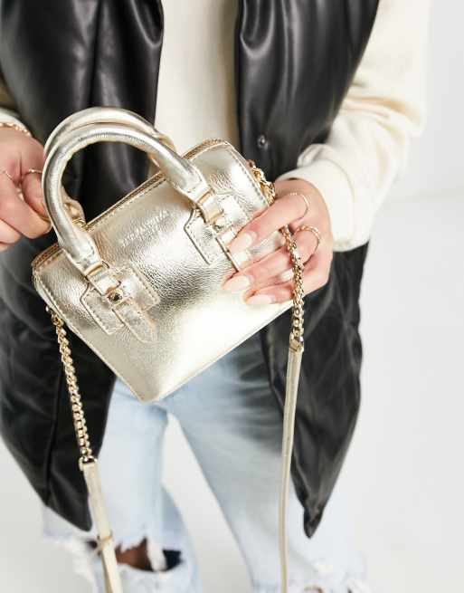 Paul Costelloe leather top handle cross body bag in gold Very well made.