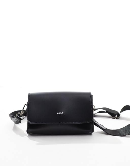 PASQ Rectangular Flap Top Cross Body Bag in Black Very well made.