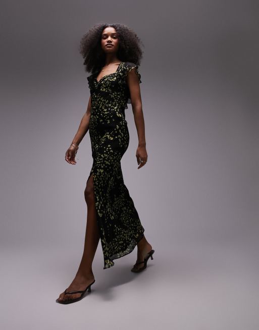 Topshop Robe habillee a manches volantees fendue a l avant Imprime fleurs ASOS Very well made.