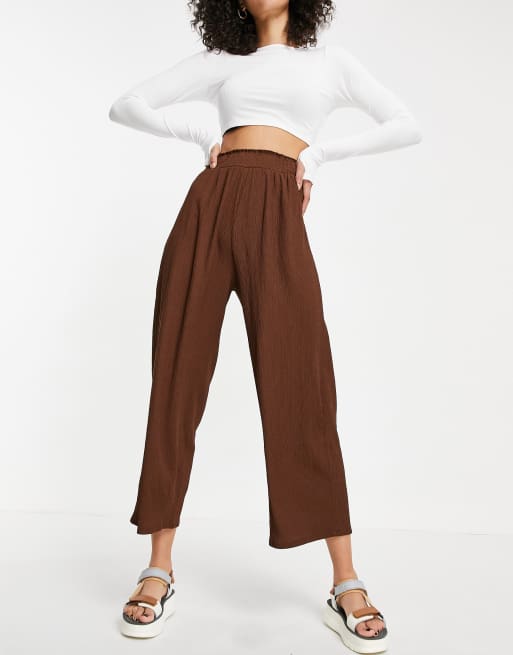 ASOS DESIGN Tall Jupe culotte texturee et froncee a la taille Marron Very well made.